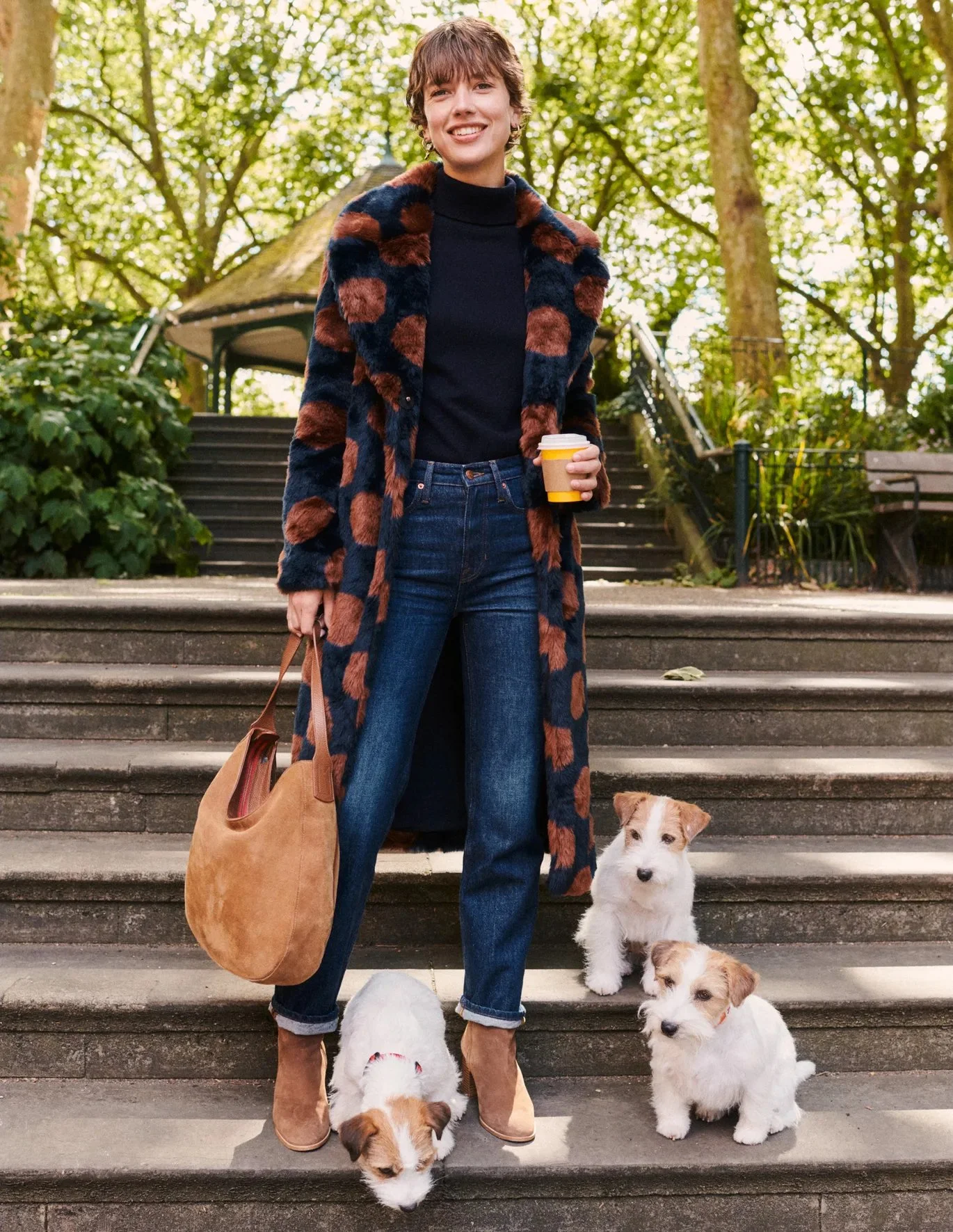 What I love about this Boden spotted faux-fur coat are the tones of the deep blue base and umber brown dots. It feels playful yet sophisticated if paired with a wide-leg trouser pant, and yet able to be dressed down with a pair of jeans. Again, I find the over scaled nature of the pattern to be the perfect size - giving it a bold look for the fall / winter.